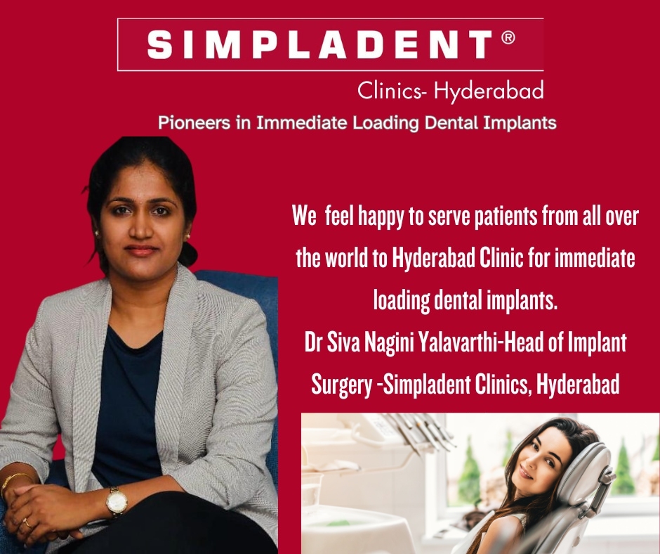 About Simpladent Hyderabad: Simpladent Hyderabad is a leading dental clinic specializing in immediate loading implants and comprehensive dental care. Headed by Dr. Siva Nagini Yalavarthi, an accomplished expert in Dental Implant Surgery, the clinic is committed to delivering efficient and effective dental solutions for patients of all ages and diverse dental conditions. . For more information please call +91-8448447763 or visit www.simpladentclinics.com. Simpladent Clinics is also offering immediate loading dental implant services in Delhi NCR, Visakhapatnam and Delhi NCR.