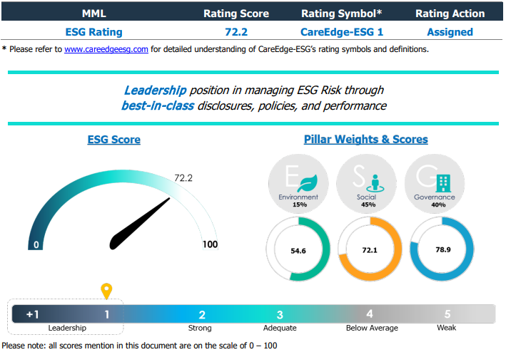 For more information on the ESG rating, kindly refer to the rating rationale.