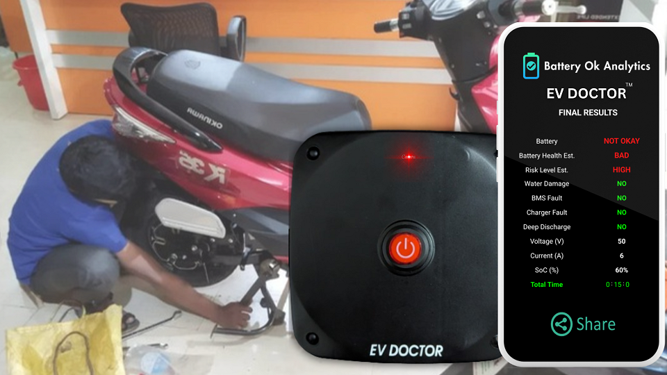 Introducing EV DOCTOR™, An AI-based battery diagnostics technology is revolutionizing the EV industry by ensuring efficient battery quality control and after-sales service. It enables EV dealers and service centers to diagnose battery health within 15 minutes – ten times faster than alternative testers—providing insights via a mobile app. The device delivers crucial information about battery health, safety, faults, water damage, charger issues, capacity, and more. This device supports both hard BMS and Smart BMS batteries, enabling EV stakeholders to take better decisions with the batteries.